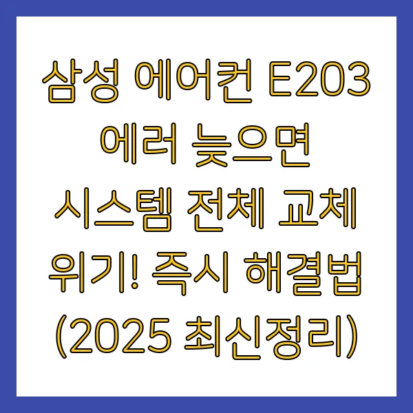 갑작스러운 더위에 에어컨을 켰는데, 낯선 에러 코드 E203이 깜빡이며 찬 바람이 나오지 않는다면 정말 당황스럽죠. 특히 "이거 방치하면 에어컨 통째로 바꿔야 할 수도 있다던데?" 하는 불안감은 여름철 불쾌지수를 더욱 높입니다. 마치 시한폭탄을 안고 있는 듯한 삼성 에어컨 E203 에러 , 방치하면 실제로 시스템 전체 교체라는 최악의 상황으로 이어질 수 있습니다. 이 글에서는 2025년 최신 정보를 바탕으로 삼성 에어컨 E203 에러 의 의미와 발생 원인, 그리고 무엇보다 중요한 즉각적인 해결 방법과 예방 팁까지 상세하게 알려드리겠습니다. 제 경험상, 이런 에러 코드는 초기에 잡는 것이 시간과 비용을 아끼는 지름길입니다.