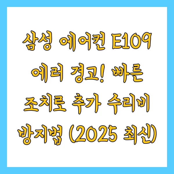 갑작스러운 삼성 에어컨 E109 에러 메시지에 당황하셨나요? 한여름 무더위 속 에어컨 고장은 상상만으로도 끔찍합니다. 특히 E109 에러 코드는 실외기 관련 문제일 가능성이 높아, 방치할 경우 더 큰 고장으로 이어져 수리비 부담이 커질 수 있습니다. 하지만 너무 걱정하지 마세요! 오늘 이 글에서는 2025년 최신 정보를 바탕으로 삼성 에어컨 E109 에러 발생 시 신속하게 대처하여 추가 수리비를 막고, 더 나아가 에어컨을 건강하게 오래 사용하는 비법을 알려드리겠습니다. 마치 옆집 에어컨 전문가가 알려주듯 쉽고 명확하게 설명해 드릴게요.