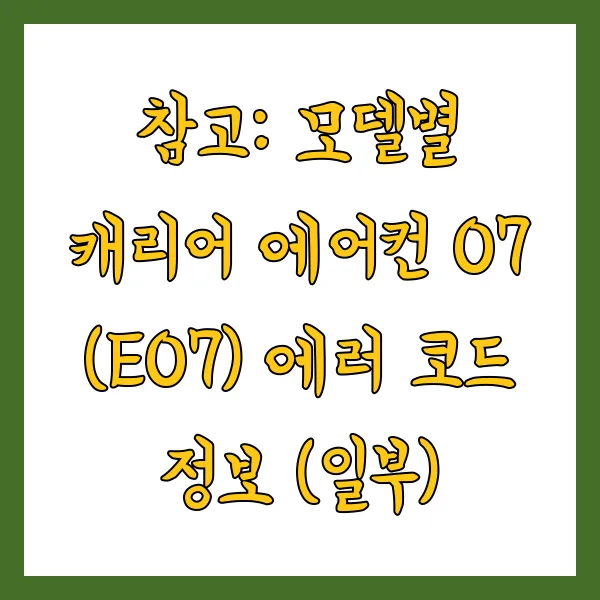 📋 참고: 모델별 캐리어 에어컨 07 (E07) 에러 코드 정보 (일부)